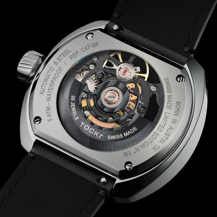 This Tockr skeleton C47 is limited to only 8 pieces and is full of subtle details. Pre-order this watch and save 30%. This watch will ship in December, before the holidays.