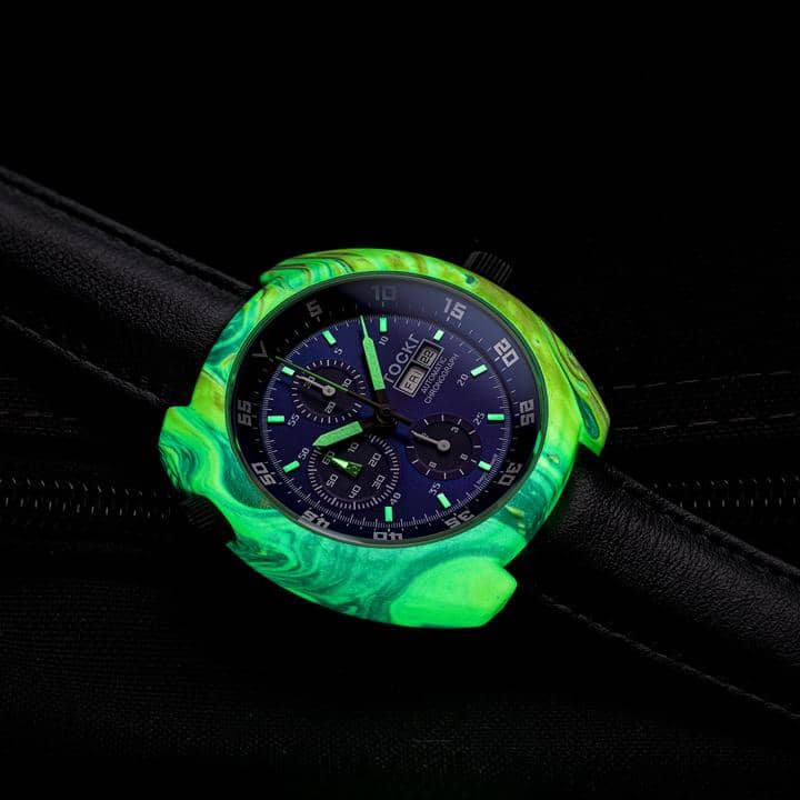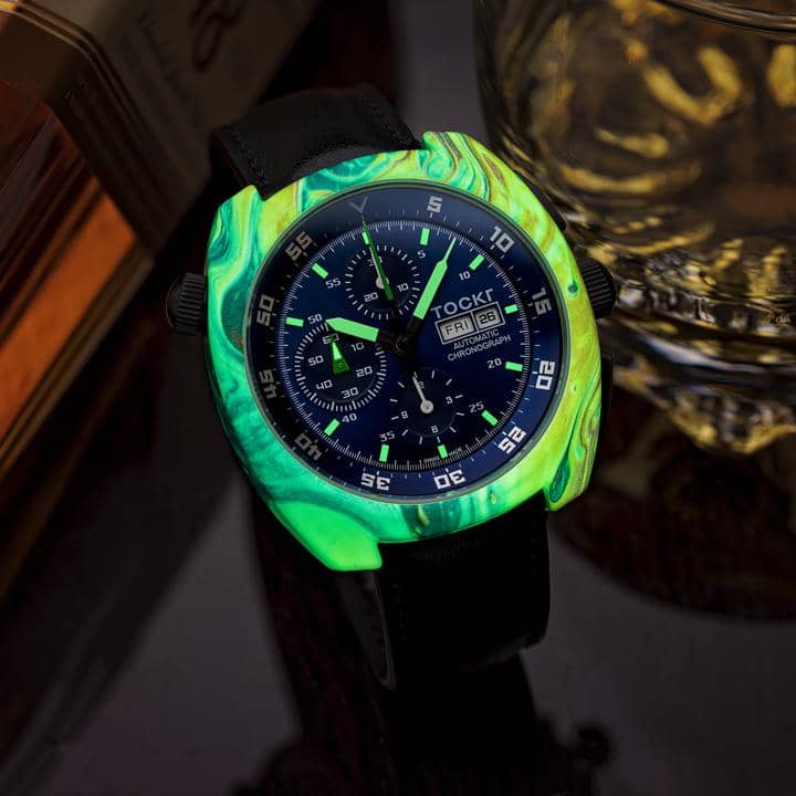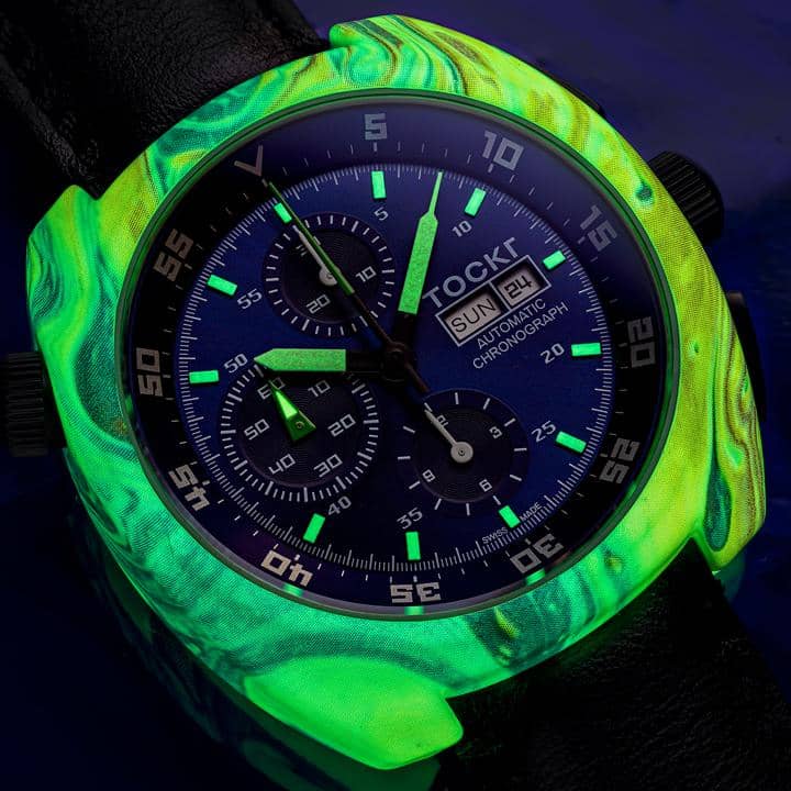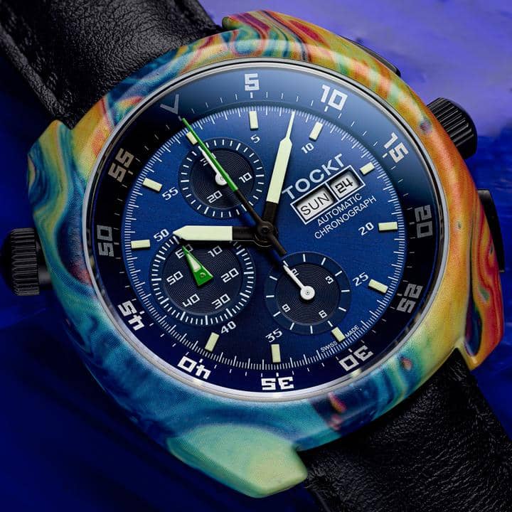 The Hydro Dipped Series is intended for Tockr’s most daring clients. Bold and colorful patterns have been applied to our 45mm Chronograph and 42mm Skytrain for an impactful result.