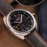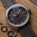 Our beautiful three-hander is full of subtle details. From the applied hour indices, to the debossed minute markers, and the small C-47 at the tip of every ticking second. This model is the namesake of the C-47 SkyTrain, a WW2 military transport built from the civilian DC-3 aircraft. Its construction was contracted by the US Army Airforce, and the first SkyTrain took to the skies in back in 1941.